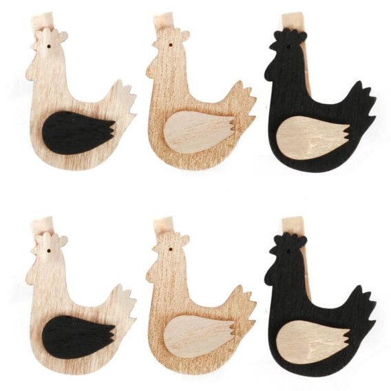 KURA DREWNIANA KLAMERKA WIELKANOCNA 6SZT