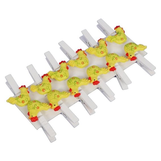 Klamerki Dekoracyjne Koguciki Żółte 12szt - Wielkanocne Akcesoria Dekoracyjne