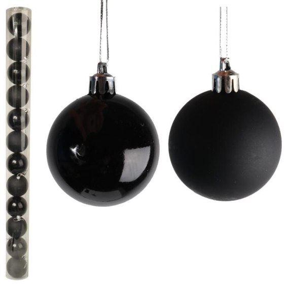 Komplet 12 Czarnych Bombek Plastikowych w Tubie - Mat i Połysk 7cm