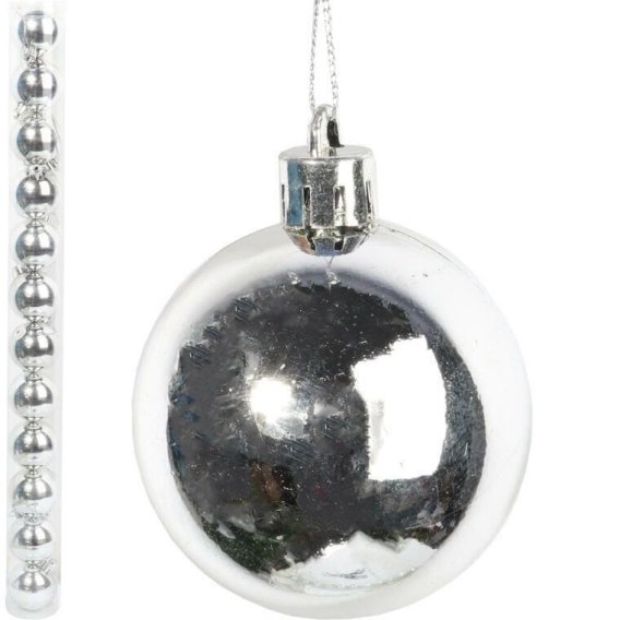 Komplet 12 bombek plastikowych w kolorze srebrnym 6 cm