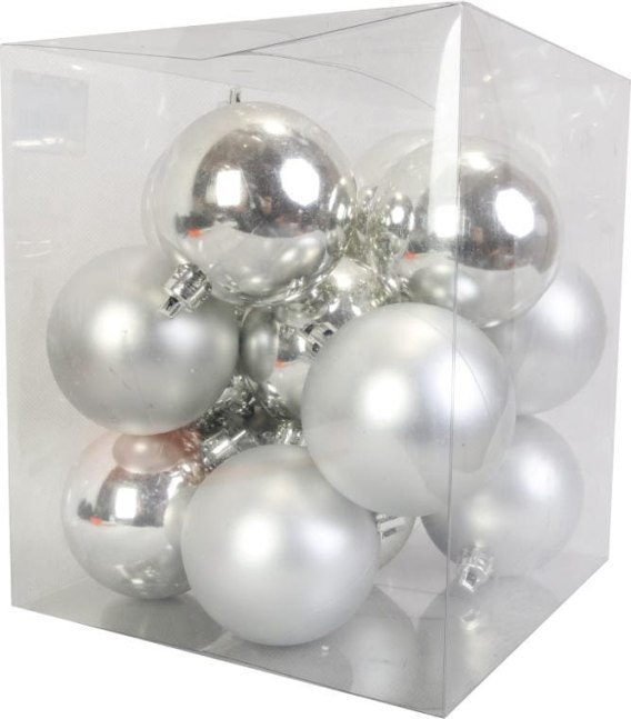 Komplet 16 matowych i błyszczących bombek plastikowych srebrnych 6 cm w boksie PVC