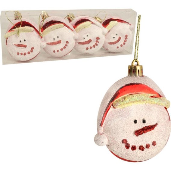 Komplet 4 Plastikowych Bombek w Kształcie Głowy Bałwana