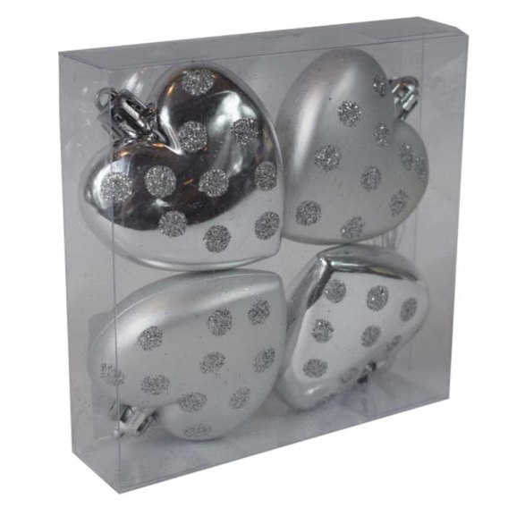 Komplet 4 Srebrnych Bombek w Kształcie Serca