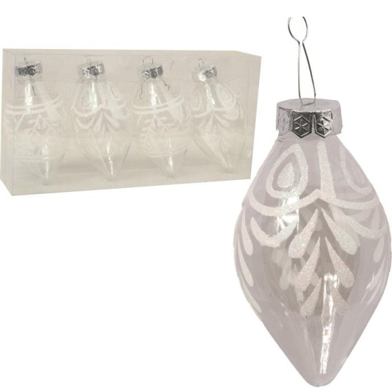 Komplet 4 bombek plastikowych, przeźroczystych z dekorem w kształcie wrzeciona to elegancka dekoracja, która doda wyjątkowego charakteru Twojej choinkowej aranżacji. Wykonane z wysokiej jakości plastiku, bombki te są nie tylko lekkie, ale również trwałe, co sprawia, że doskonale sprawdzą się przez wiele sezonów.