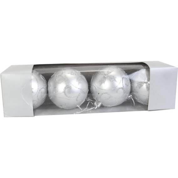 Komplet 4 bombek plastikowych 6 cm srebrne