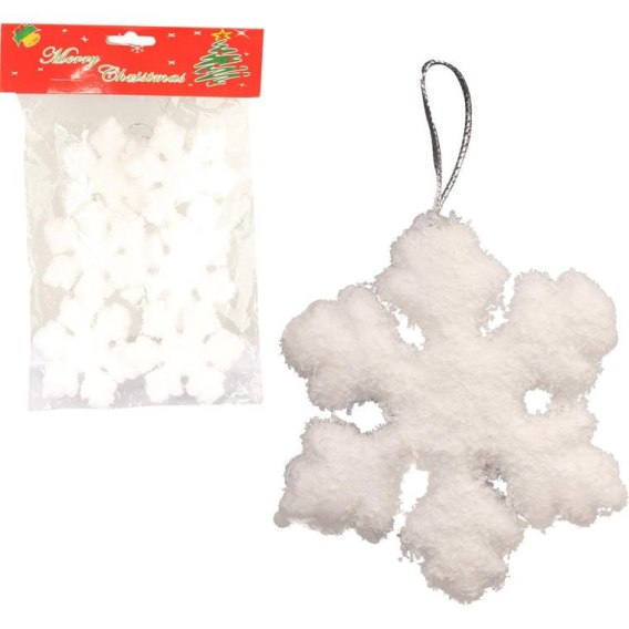 Komplet sześciu styropianowych zawieszek w kształcie śnieżynek w kolorze białym to doskonały element dekoracyjny, który wprowadzi do Twojego wnętrza zimową magię i świąteczny nastrój. O wymiarach 6 cm, te urokliwe zawieszki są idealne do ozdabiania choinki, stroików oraz innych aranżacji, dodając im lekkości i elegancji.