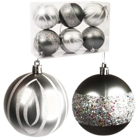 Komplet 6 Grafitowych Bombek Plastikowych o Średnicy 8 cm