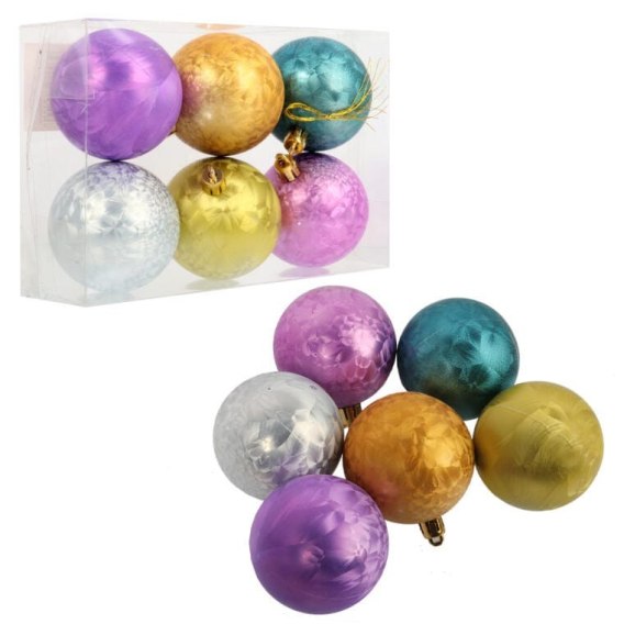 Komplet 6 Multikolorowych Bombek Plastikowych - Dekoracja Świąteczna 6 cm