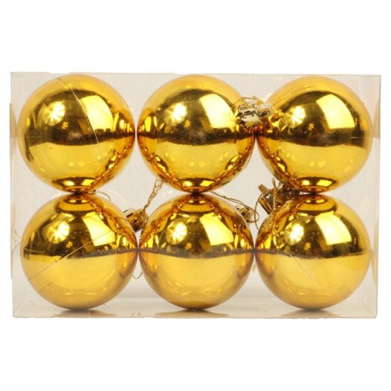 Komplet sześciu bombek plastikowych w kolorze złotym to doskonała propozycja na świąteczne dekoracje. Każda bombka ma średnicę 6 cm, co sprawia, że idealnie nadają się do ozdabiania choinki, stroików lub innych miejsc w Twoim domu.