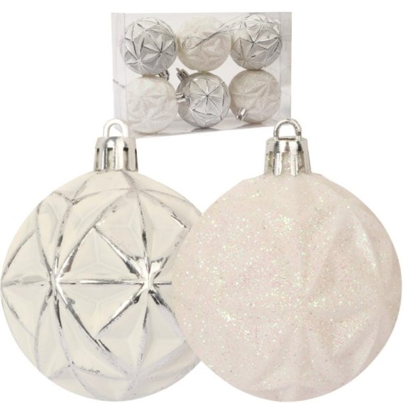 Udekoruj swoją choinkę w elegancki sposób z kompletem 6 bombek plastikowych, wytłaczanych w kolorze białym. Ten zestaw zawiera trzy bombki posrebrzane i trzy brokatowe, każda o średnicy 6 cm, co sprawia, że doskonale komponują się w różnych aranżacjach. Bombki posrebrzane dodają blasku, podczas gdy brokatowe wprowadzają odrobinę magii i przyciągają wzrok w każdych warunkach oświetleniowych. Dzięki swojej lekkiej konstrukcji, łatwo je zawiesić na gałązkach choinki, a ich wytrzymały materiał zapewnia długotrwałe użytkowanie. Idealne na świąteczne dekoracje, będą również wspaniałym prezentem dla bliskich. Ten zestaw bombek to doskonały sposób na wzbogacenie świątecznej atmosfery i stworzenie niezapomnianych wspomnień!