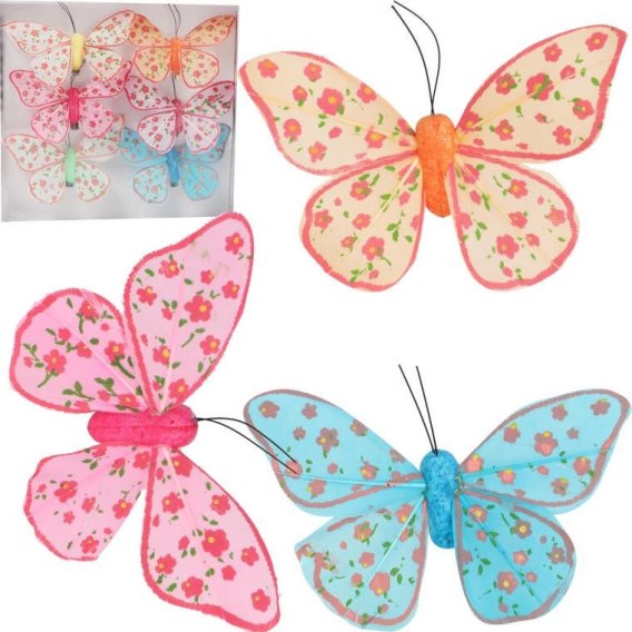 Komplet 6 motyli na klamerce 7 cm