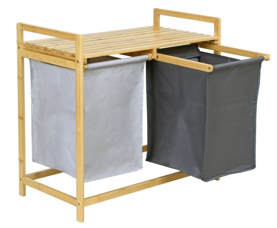 Bambusowy kosz na pranie Hanoi to estetyczny i pojemny kosz, który pomieści mnóstwo odzieży. Wykonany ze szlifowanego bambusa, nie ma ostrych krawędzi, jest przyjemnie gładki i starannie wykończony. Górna półka może służyć jako miejsce na akcesoria łazienkowe, środki piorące, a także jako miejsce na dekoracje czy świece zapachowe. Kosz posiada szyny, które ułatwiają napełnianie i opróżnianie materiałowych worków. Dzięki nim worki można wysunąć i przetransportować. Materiał przypięty jest na rzep, można go zdjąć i wyprać. Hanoi złożysz bez wiercenia i specjalistycznych narzędzi. Montaż zajmuje dosłownie chwilę, a wszystko co niezbędne do jego złożenia znajdziesz w zestawie.