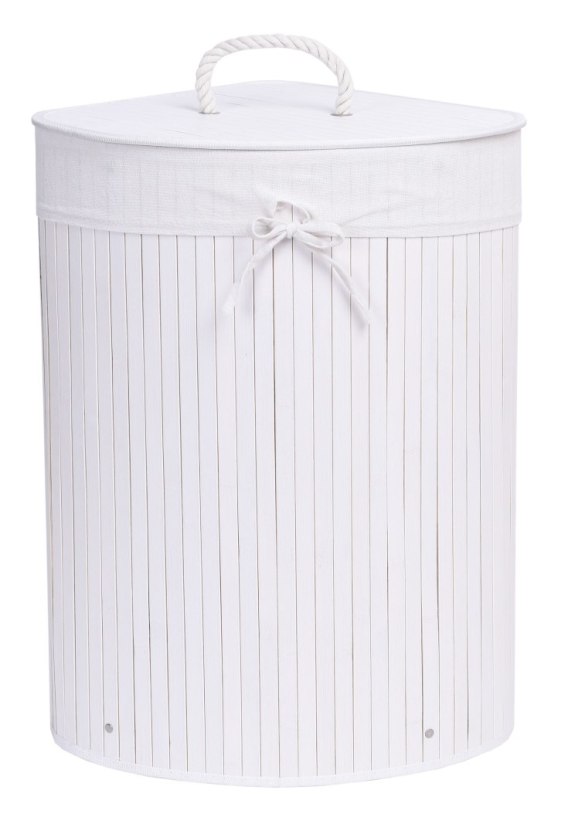 Kosz narożny na pranie bambusowy 60L biały