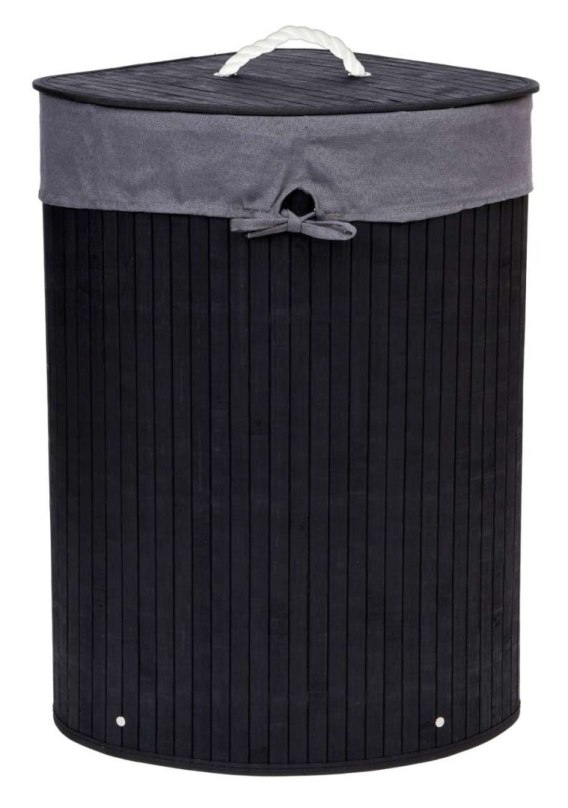 Kosz narożny na pranie bambusowy 60L czarno-szary