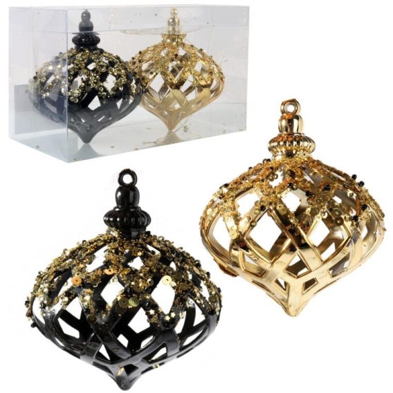 Kpl. 2 bombek plastikowych ażurowe wrzeciona czarno złote