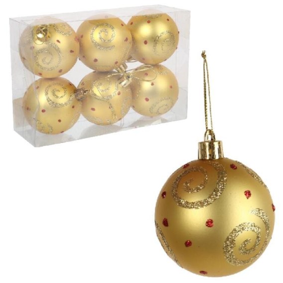 Kpl. 6 bombek plastikowych z dekorem 6 cm złote