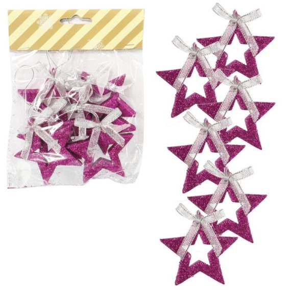 Kpl. 6 zawieszek brokatowych GWIAZDKI fioletowe
