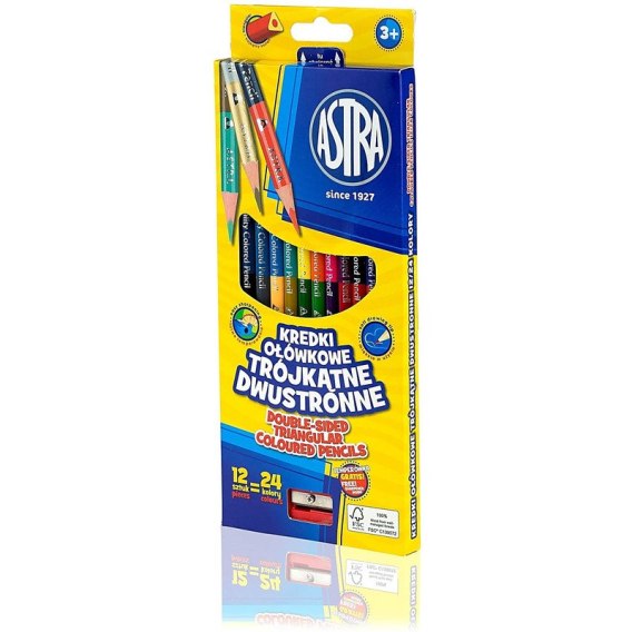 Kredki ołówkowe Astra dwustronne trójkątne 24 kolo