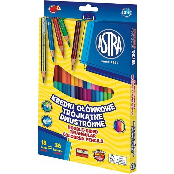 Kredki ołówkowe Astra dwustronne trójkątne 36 kolo