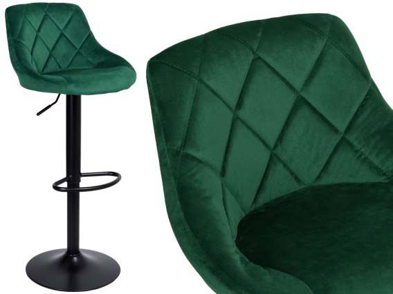 Krzesło barowe CYDRO BLACK welurowe ciemnozielone VELVET