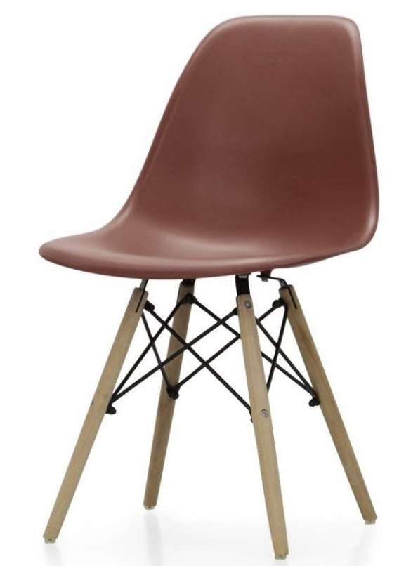 Nowoczesne, stylowe i praktyczne krzesło w stylu skandynawskim z siedziskiem w kolorze brązowym oraz drewnianymi nogami.