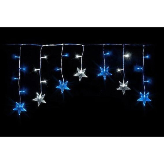 Kurtyna Świetlna Niebiesko-Białe Gwiazdki 28 LED z Zasilaniem Sieciowym, Odporna na Warunki Zewnętrzne IP44, Długość 1,05 m