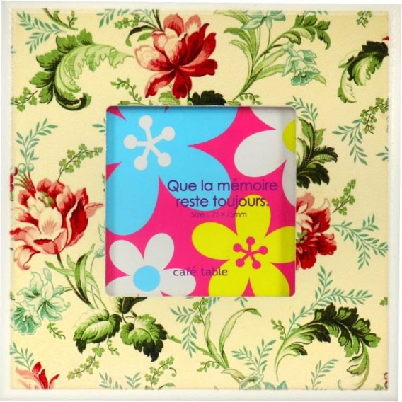 Kwadratowa Drewniana Ramka na Zdjęcie z Kwiatowym Zdobieniem, Kremowa, 13,5x13,5 cm