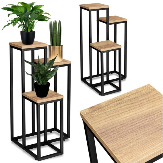 Munir to solidny kwietnik wykonany ze stalowych profili malowanych proszkowo wykończonych na kolor czarnego matu oraz płyty laminowanej w kolorze dębu craft. Cechuje go proste wzornictwo i atrakcyjny design, który wpasuje się w każde nowocześnie urządzone pomieszczenie w stylu loftowym, klasycznym czy industrialnym. Kwietnik ma wytrzymałą, stalową konstrukcję oraz stabilne półki na kwiaty i dekoracje, nawet te o dużej wadze. Posiada ochronne podkładki. Wykonany z najwyższej jakości materiałów z zachowaniem dbałości o najdrobniejsze detale. Doskonale nadaje się do eksponowania kwiatów i pokazania ich wyjątkowych walorów. Munir to wyjątkowy kwietnik, o solidnej konstrukcji i ciekawym wzornictwie, obok którego nie można przejść obojętnie.