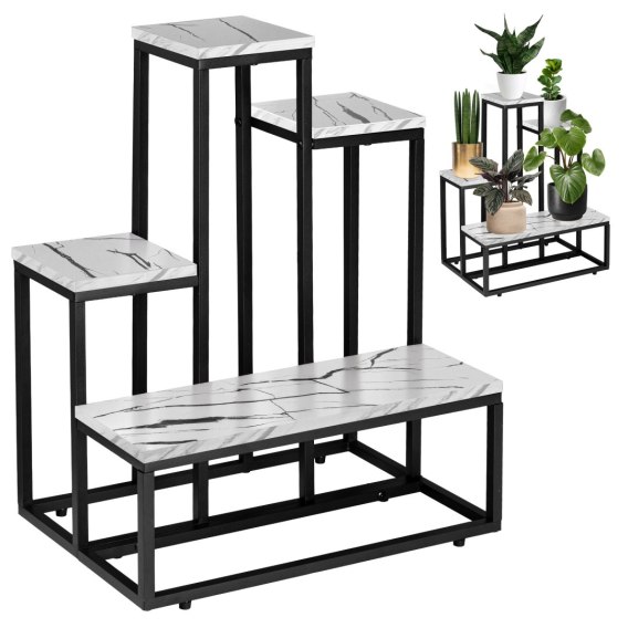 Antires to solidny kwietnik wykonany ze stalowych profili malowanych proszkowo oraz matowych płyt laminowanych imitujących marmur. Cechuje go proste wzornictwo i atrakcyjny design, który wpasuje się w każde nowocześnie urządzone pomieszczenie w stylu nowoczesnym, klasycznym czy glamour. Kwietnik ma wytrzymałą stalową konstrukcję oraz stabilne półki na kwiaty i dekoracje, nawet te o dużej wadze. Posiada ochronne podkładki u podstawy z możliwością wypoziomowania. Wykonany z najwyższej jakości materiałów z zachowaniem dbałości o najdrobniejsze detale. Doskonale nadaje się do eksponowania kwiatów i pokazania ich wyjątkowych walorów.
