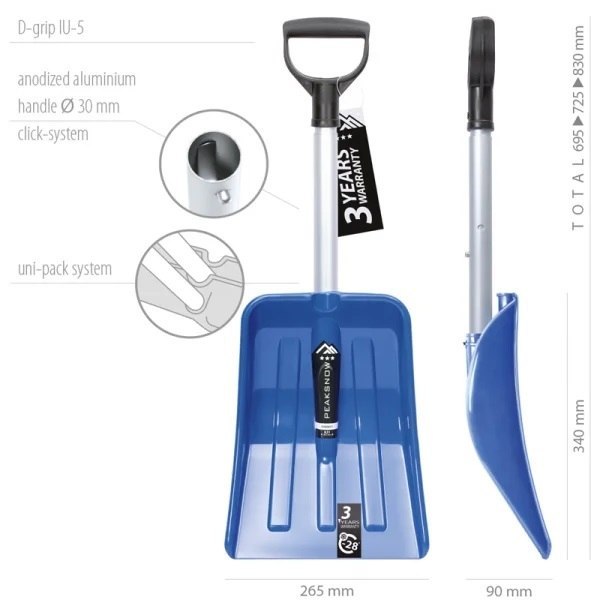 GENIALNA ŁOPATA DO ŚNIEGU, TELESKOPOWA, ALUMINIOWY TRZON EVEREST KOLOR NIEBIESKIWyprodukowana z materiału o bardzo dobrej odporności na pękanie i niskie temperatury Teleskopowy regulowany sztyl Ergonomiczna budowa dopracowana pod względem wytrzymałości oraz wydajności Dwuczęściowy trzonek ma możliwość zmiany położenia rączki o 180 stopni Odporna na zmienne warunki atmosferyczne, nie zardzewieje Łatwa w przechowywaniu, dzięki dwuczęściowej i składanej konstrukcji zajmuje mało miejsca |