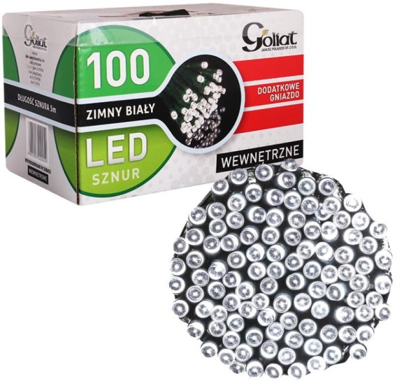 Lampki choinkowe 100 LED wewnętrzne zimny biały z dod. gniazdem