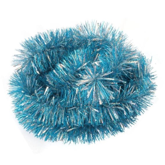 Łańcuch choinkowy metalizowany fi 7 cm w kolorze srebrno-turkusowym, mix grubości, 2 m długości