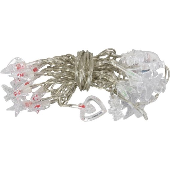 Miksowane Lampki Choinkowe LED w Kształcie Serduszek, Choinek i Śnieżynki, Kolor Czerwony, Zielony, Biały na Przeźroczystym Prze