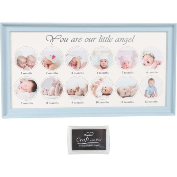 Ramka na zdjęcie dziecka to wyjątkowy sposób na zachowanie pięknych wspomnień z pierwszego roku życia maluszka. Ta elegancka ramka, w kolorze niebieskim, pomieści aż 12 zdjęć, umożliwiając rodzicom uwiecznienie najważniejszych chwil od pierwszego do dwunastego miesiąca. Dodatkowo, z boku ramki znajduje się miejsce na odcisk rączki i stópki, co sprawia, że produkt staje się nie tylko estetyczną dekoracją, ale także cenną pamiątką dla rodziców oraz dziadków. Ramka oferuje możliwość zarówno postawienia na półce, jak i powieszenia na ścianie, co daje elastyczność w aranżacji wnętrza. W zestawie znajduje się także czarny tusz oraz gąbka do odcisków, co sprawia, że cały proces tworzenia wspomnień jest prosty i przyjemny. Z wysokością 21 cm i długością 39 cm, ramka doskonale wkomponuje się w każdy styl dekoracyjny, a jednocześnie stanie się pięknym akcentem w pokoju dziecka. To idealny prezent na baby shower, chrzest lub inne okazje, które celebrują narodziny nowego członka rodziny.