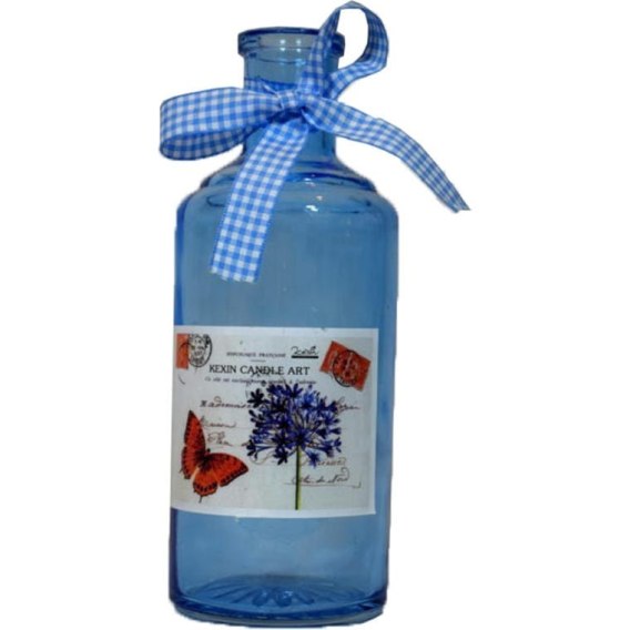 Niebieska Szklana Butelka z Kokardą i Naklejką o Wysokości 19,5 cm
