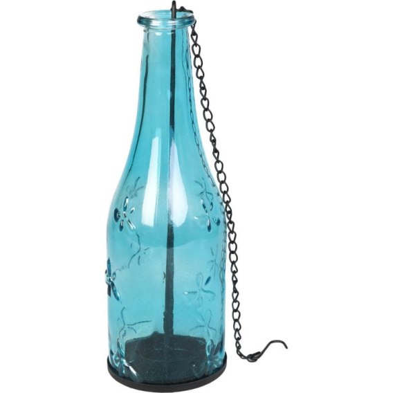 Niebieska Wisząca Butelka na Świeczki T-light z Unikalnym Wzornictwem