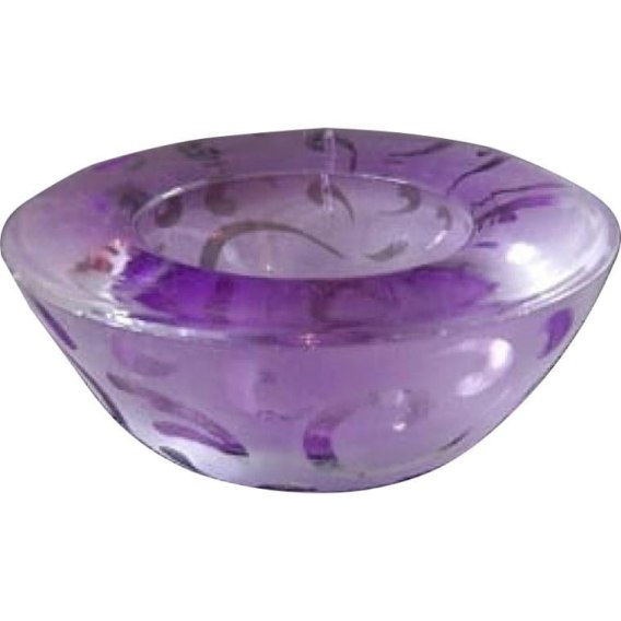 Niski fioletowy świecznik szklany o wymiarach 3 x 7.5cm