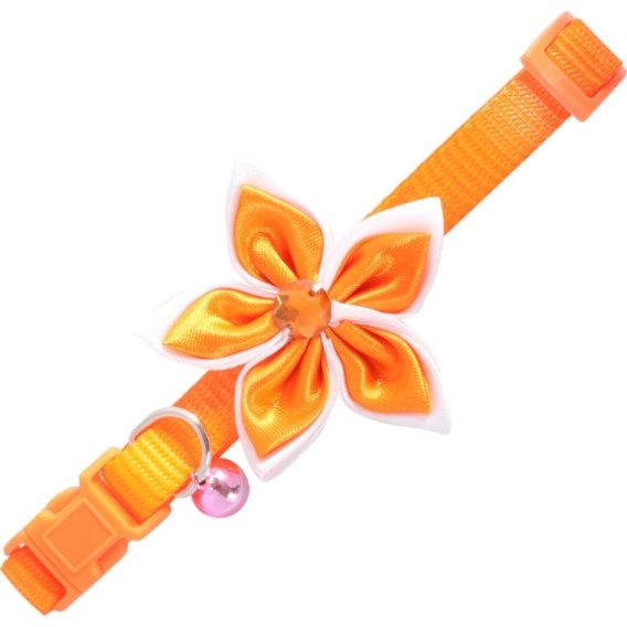 Obroża Charme Pomarańczowa z Dekoracyjnym Kwiatem i Dzwoneczkiem Bezpieczeństwa