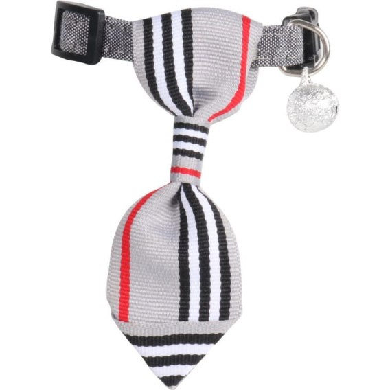 Obroża Ozdobna z Krawatem i Bezpiecznym Dzwoneczkiem w Kolorze Szarym dla Pupila