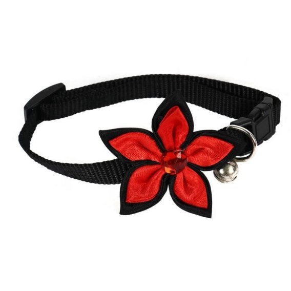 Obroża dla zwierząt w kolorze czarnym z kwiatowym zdobieniem i dzwonkiem