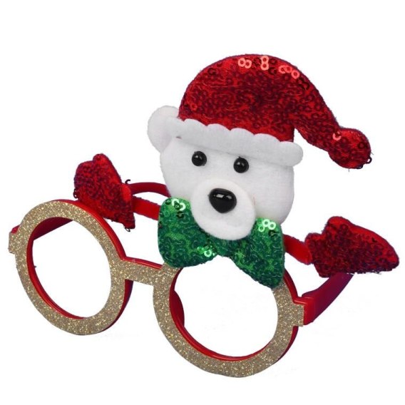 Okulary Świąteczne Brokatowe z Figurką Misia, Czerwone, 14x14 cm