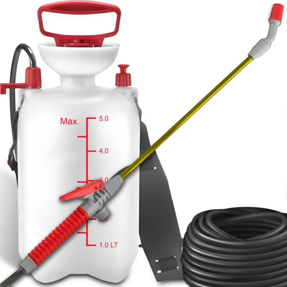 Opryskiwacz ogrodowy ręczny ciśnieniowy 5 l - biało czerwony