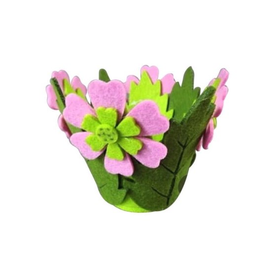 Osłonka na doniczkę z filcu w różowe kwiaty
