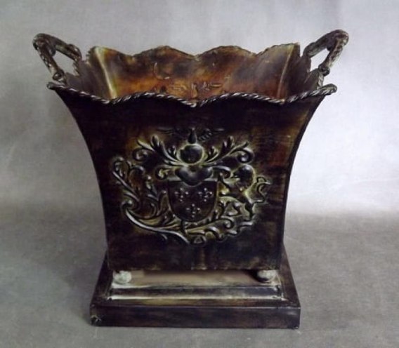 Kwadratowa osłonka-pojemnik z metaloplastyki w kolorze brązowym to elegancka i funkcjonalna dekoracja, która doskonale sprawdzi się zarówno w domu, jak i w ogrodzie. Wyposażona w wygodne uchwyty, łączy w sobie praktyczność i stylowy wygląd. Jako większy element z kolekcji, o wymiarach 31x28 cm, świetnie nadaje się do przechowywania większych roślin lub innych dekoracyjnych przedmiotów. Metalowy design w odcieniach brązu wprowadza klasyczny i rustykalny akcent do każdej aranżacji.