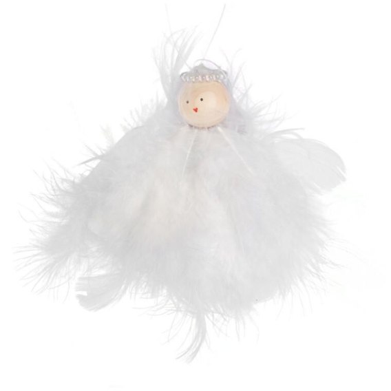Ozdoba bożonarodzeniowa zawieszka ANIOLEK Z PIÓRKAMI 10 cm BIAŁY