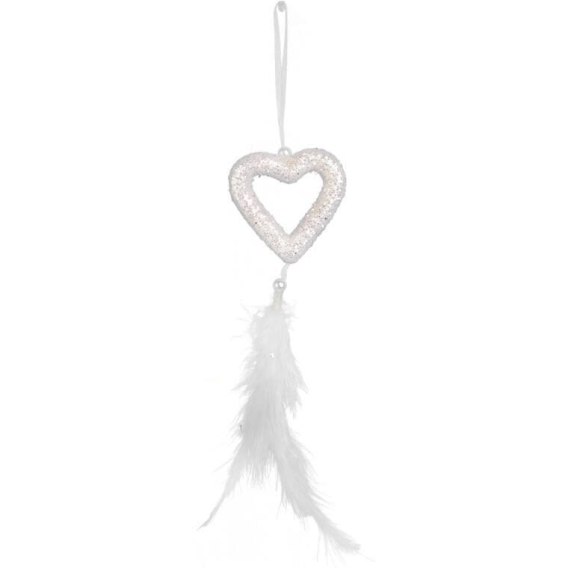 Ozdoba bożonarodzeniowa zawieszka SERCE Z PIÓRKAMI 30 cm BIAŁA