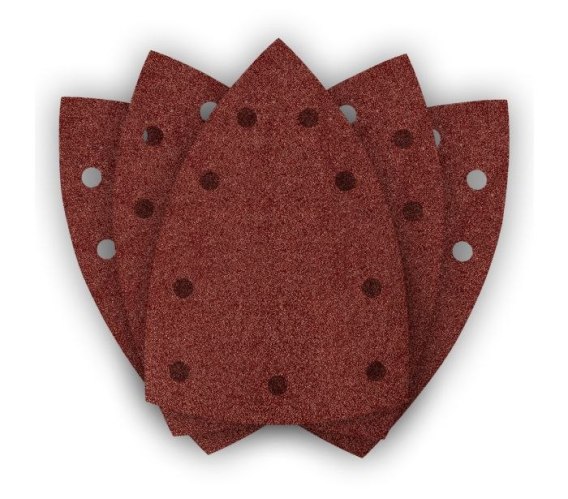 Papiery ścierne na rzep, żelazko 100 x 147 mm, P80, 5 sztuk, z 8 otworami do 04-623, 54-056 NEO TOOLS to akcesorium przeznaczone do precyzyjnego szlifowania drewna, metalu, tworzywa sztucznego i płyt kartonowo-gipsowych. Dzięki wymiarom 100 x 147 mm oraz 8 otworom zapewnia efektywne odprowadzanie pyłu, co poprawia komfort pracy i wydłuża żywotność papieru. System mocowania na rzep umożliwia szybkie oraz wygodne zamocowanie na dedykowanej szlifierce oscylacyjnej 04-623 NEO TOOLS.