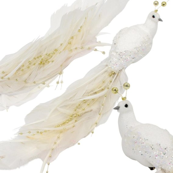 PTASZEK DEKORACYJNY NA KLIPIE 38CM - BIAŁY