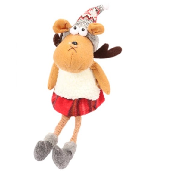 Pluszowy Renifer w Czerwonej Kratce - Siedzący, Brązowy, 40 cm