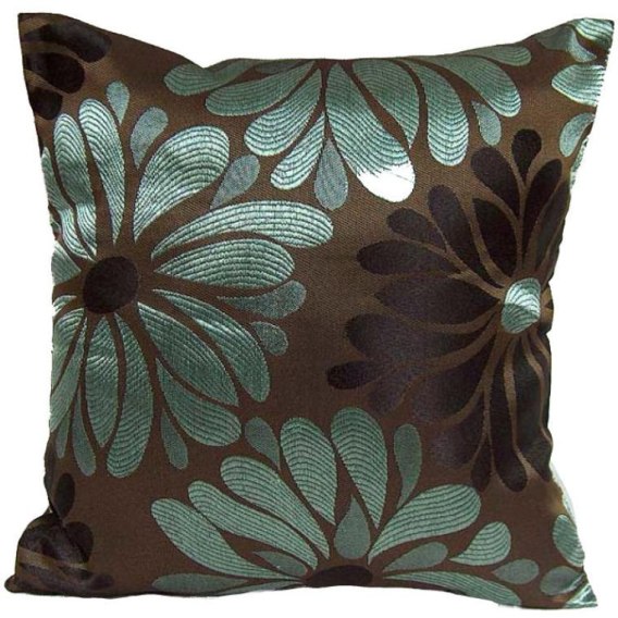 Poduszka dekoracyjna brązowa z seledynowym wzorem kwiatowym 40 x 40 cm bez wkładu